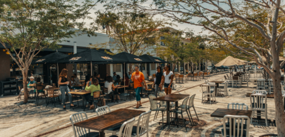 In 2017, the 100 block of Giralda Avenue re-opened as Giralda Plaza, a pedestrian walkway lined on each side with numerous high-quality restaurants, bars, and coffee shops with indoor and outdoor seating.
