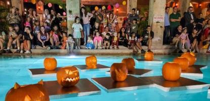 - Included: Pumpkin carving kit, carving contest, trick-or-treat stations, snacks, and floating of the jack-o-lanterns around the pool.
