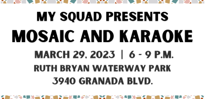 Join My Squad – a social gathering for adults with intellectual and developmental disabilities and autism – on March 29, 2023, at 6 p.m. to make a giant mosaic project and sing karaoke outside on the big screen. Registration includes pizza for dinner.