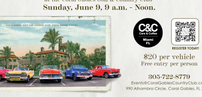 Take a trip down memory lane with an early Father's Day celebration at the Coral Gables Golf & Country Club, 990 Alhambra Circle. Cruise in your classic or exotic vehicle and enjoy food trucks, refreshments, live cigar rolling and early access parking!