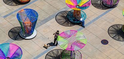 “Los Trompos,” which means "spinning tops" in Spanish, is a traveling exhibit that has been displayed in cities around the world, including Mexico City, Paris and New York. The lively installation will feature eight larger-than-life, three-dimensional tops in a variety of colors and shapes that invite visitors to play and engage.