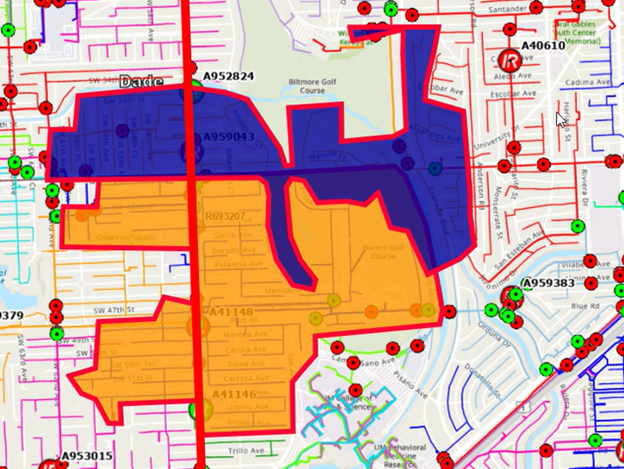 The areas shown in blue and orange below are also in early design, and public outreach to area residents (FPL customers) is commencing, with construction anticipated to begin in 2025 as well. This phase is located in the area south, and immediately east, of the Biltmore zone (blue area) and west of the Riviera zone (orange).